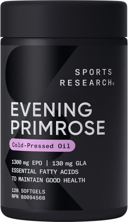 Sports Research Evening Primrose Supplement from Cold Pressed Oil – Softgels for Women’s Health & Skin Health – Gluten Free & Non-GMO GLA – High Potency 1300mg, 120 Count