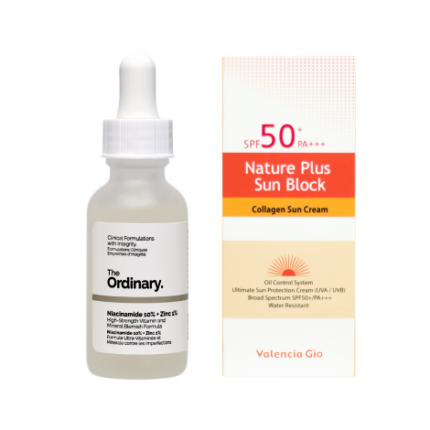 Original price was: ৳ 1,400.00.৳ 1,040.00Current price is: ৳ 1,040.00.Valencia Gio Nature Plus Sun Block 70ml & The Ordinary Niacinamide 10% Zinc 1% 30ml Combo