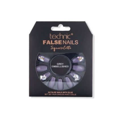 Technic Squareletto 24 False Nails With Glue – Grey Embellished