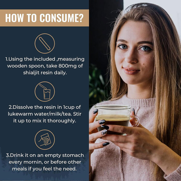 Ajoblanco Shilajit Resin is a unique and potent source of over 85 trace minerals, including fulvic acid. Our unique shilajit supplement provides the essential minerals your body craves to stay energized and ready to tackle your day. Using it couldn’t be simpler! Just dissolve a pea-sized piece of Shilajit resin in 1 cup of warm water, or drinks you like. It’s a quick and easy step to take control of your overall wellness with the power of Shilajit from the Himalayas!