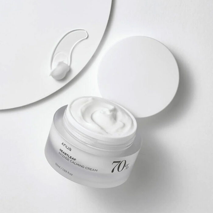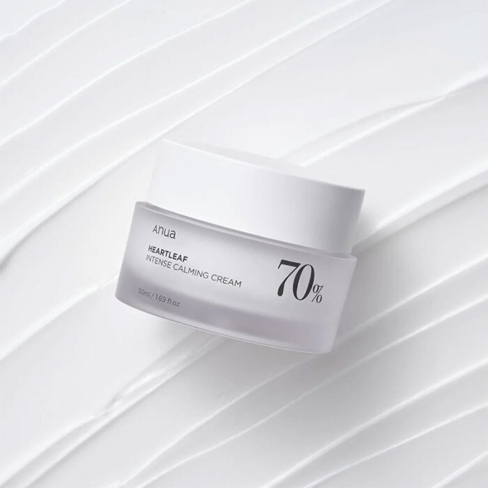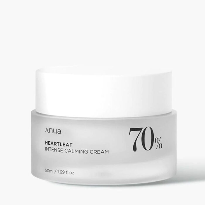 The Anua Heartleaf 70% Intense Calming Cream is a rich cream that nourishes the sensitive skin and will reduce redness. The cream is enriched with 70% Heartleaf extract that will sooth and calm the inflamed skin. The cream is also rich in ceramides and hyaluronic acid to hydrate the skin and protect and strengthen the skins moisture barrier.