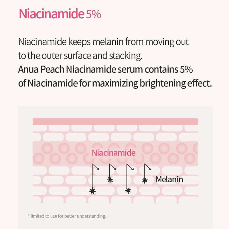 Anua Peach 70% Niacinamide Serum is an advanced facial serum formulated to help brighten skin and reduce the appearance of dullness. With 5% Niacinamide, this serum acts as a hyperpigmentation treatment to even out skin tone and support the skin’s barrier. This serum also works to also reduce the appearance of pores, and contains powerful hydrators such as Desert Yeast Oil and Triple Hyaluronic Acid to replenish skin’s moisture for softer texture. The Peach extract from Jeju Island helps nourish the skin. Get glass skin instantly and over time.