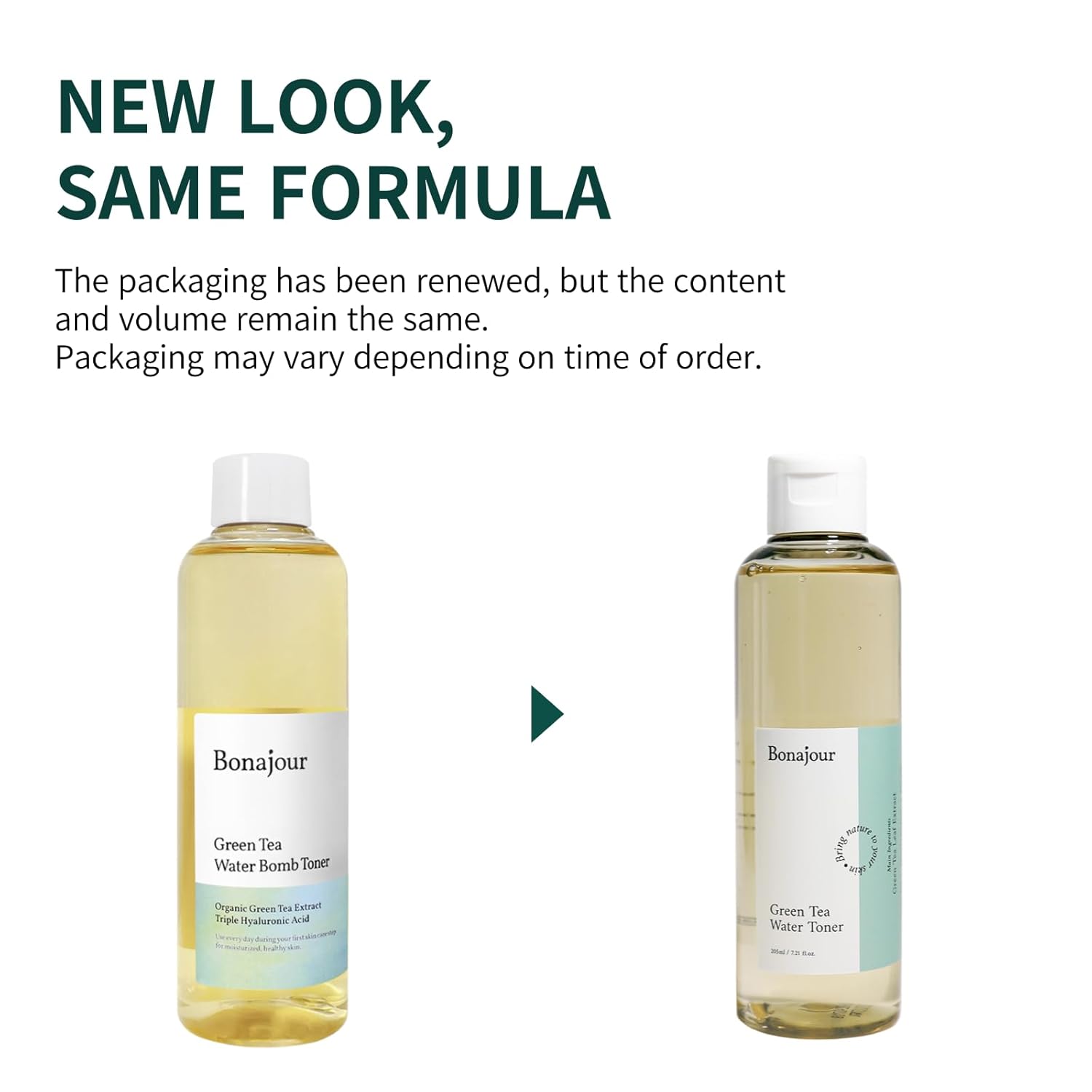 The Bonajour Green Tea Water Bomb Toner is a triple-layer hyaluronic acid hydrating toner with six types of peptides that protect the skin. It absorbs into the skin , creating moisturized skin without stickiness.