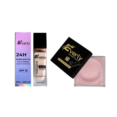 Master the art of a long-wear base with the Everly Beauties Matte & Set Duo. The Pure Matte Full Coverage Foundation (Honey) provides a rich, blendable pigment that masks imperfections and evens out skin tone with a velvety finish. To lock your look in place, the HD Loose Setting Powder (Banana) uses a fine-milled, yellow-toned formula to brighten under-eyes, neutralize redness, and eliminate shine. Together, they create a weightless, photo-ready look that resists caking and keeps oil at bay from morning to night.
