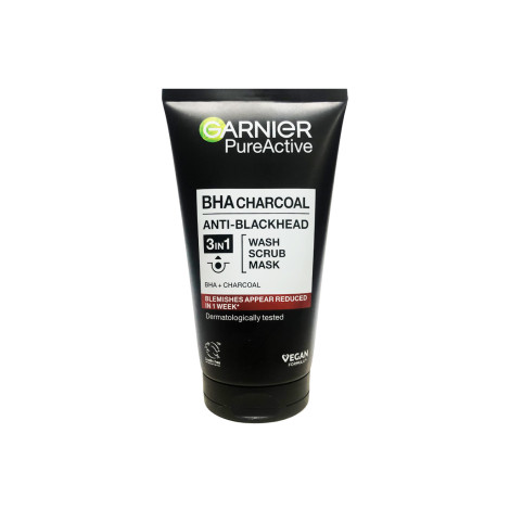 Garnier Pure Active BHA Charcoal Anti Blackhead 3in1 Wash Scrub Mask 150ml