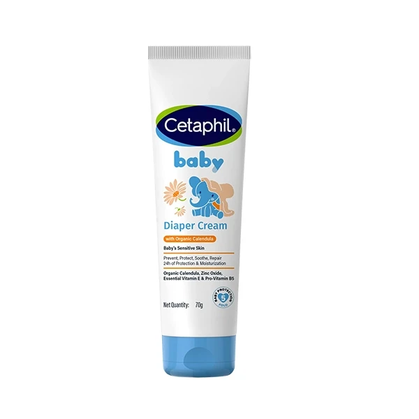 Cetaphil Baby Diaper Cream 70g contains skin-soothing ingredients like zinc oxide and petrolatum. Therefore, it forms a protective barrier against moisture, which helps reduce redness and rash caused by diaper friction. In addition, the cream helps calm irritated skin, providing quick relief for babies with sensitive or easily irritated skin. Consequently, it supports better skin comfort and protection between diaper changes.
