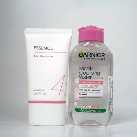 Missha Essence Sun SPF45 PA+++ 50ml & Garnier Micellar Clenasing Water All-In-1 Pink 125ml Combo