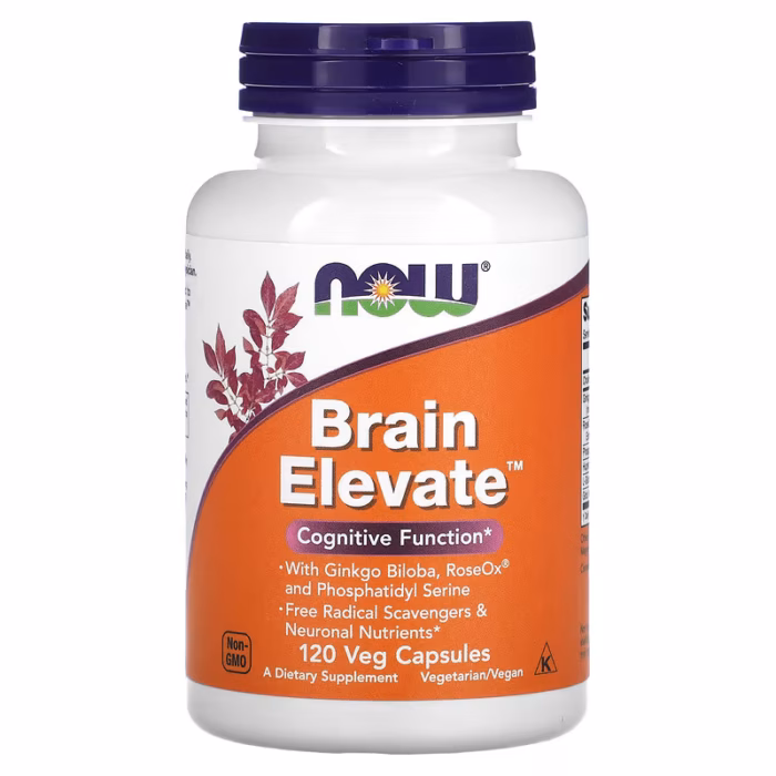 NOW® Brain Elevate™ is scientifically formulated to support healthy cerebral functions. Brain Elevate™ features Ginkgo biloba and RoseOx®, two plant extracts known for their free radical scavenging properties. This product is also formulated with phosphatidyl serine, glutamine, and choline as critical brain nutrients to promote optimal results.