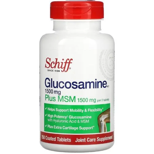 - Supports Joint Health: Schiff Glucosamine 1500mg Plus MSM and Hyaluronic Acid offers a powerful blend of ingredients to help support overall joint health. It contains glucosamine, an amino monosaccharide which helps maintain joint cartilage, plus MSM, a sulfur compound that helps relieve joint pain and inflammation. Hyaluronic acid is also included for additional lubrication and joint cushioning.