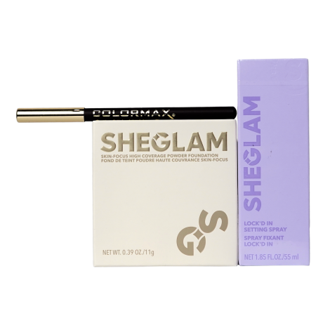 Sheglam Lock’d In Setting Spray 55ml & Sheglam Skin-Focus High Coverage Powder Foundation – Bamboo & Colormax Satin Glide Long Lasting Lip Liner Pencil – 03 Aubergine combo